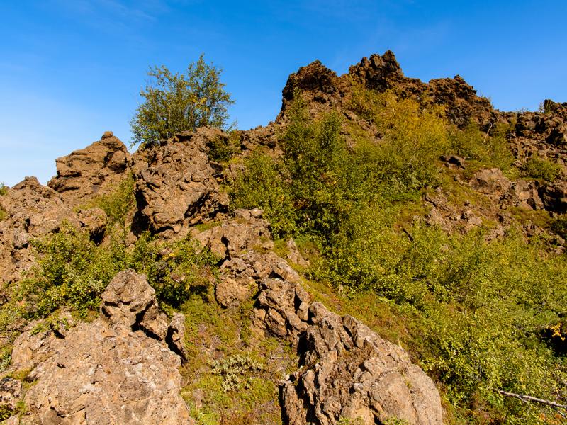 Look for Gatklettur (the cliff with the hole) and Alfakirkja (the church of the hidden people), which is open at both ends. There is a great view over the site from the viewpoint by the Dimmuborgir Café, at the car park and entrance.