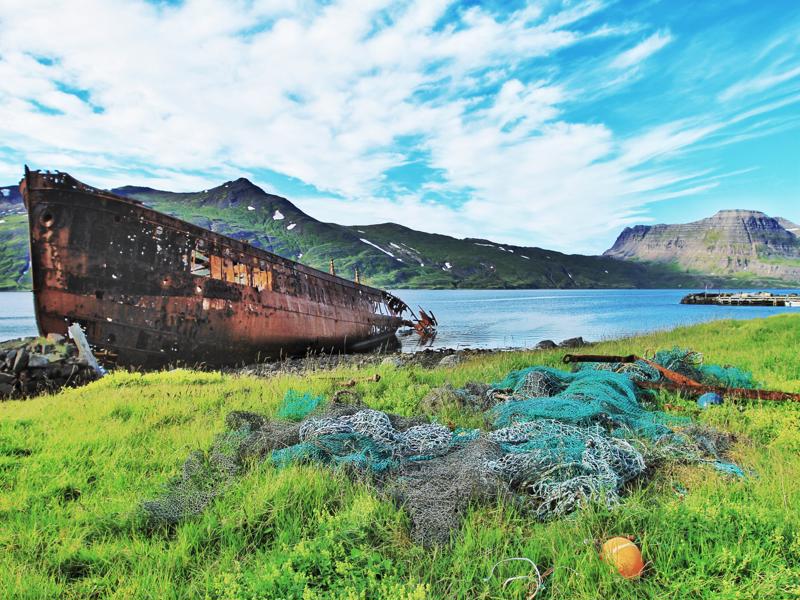 In sheltered Reykjarfjordur, Djupavík’s weather-beaten herring factory and rusting ship are all that remains of an era when this remote outpost was a hive of activity.