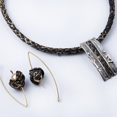 This kind of drawing power has activated Dyrfinna’s intertwining of fish skin and silver into decorative patterns of flowers and other plant life.