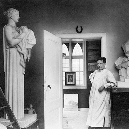 The building and adjacent sculpture garden display 123 works of Einar, - paintings and sculptures.