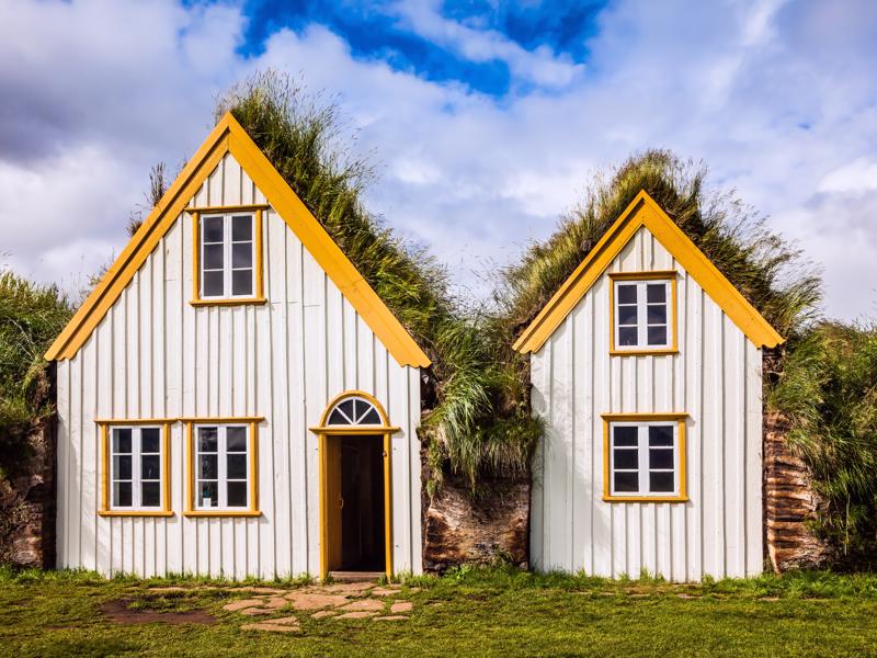 Glaumbaer is a magnificent example of a turf farm from the 18th and 19th centuries. This type of housing was universal in Iceland until around 1900 when it was gradually replaced by concrete, which is typical in most contemporary Icelandic buildings.