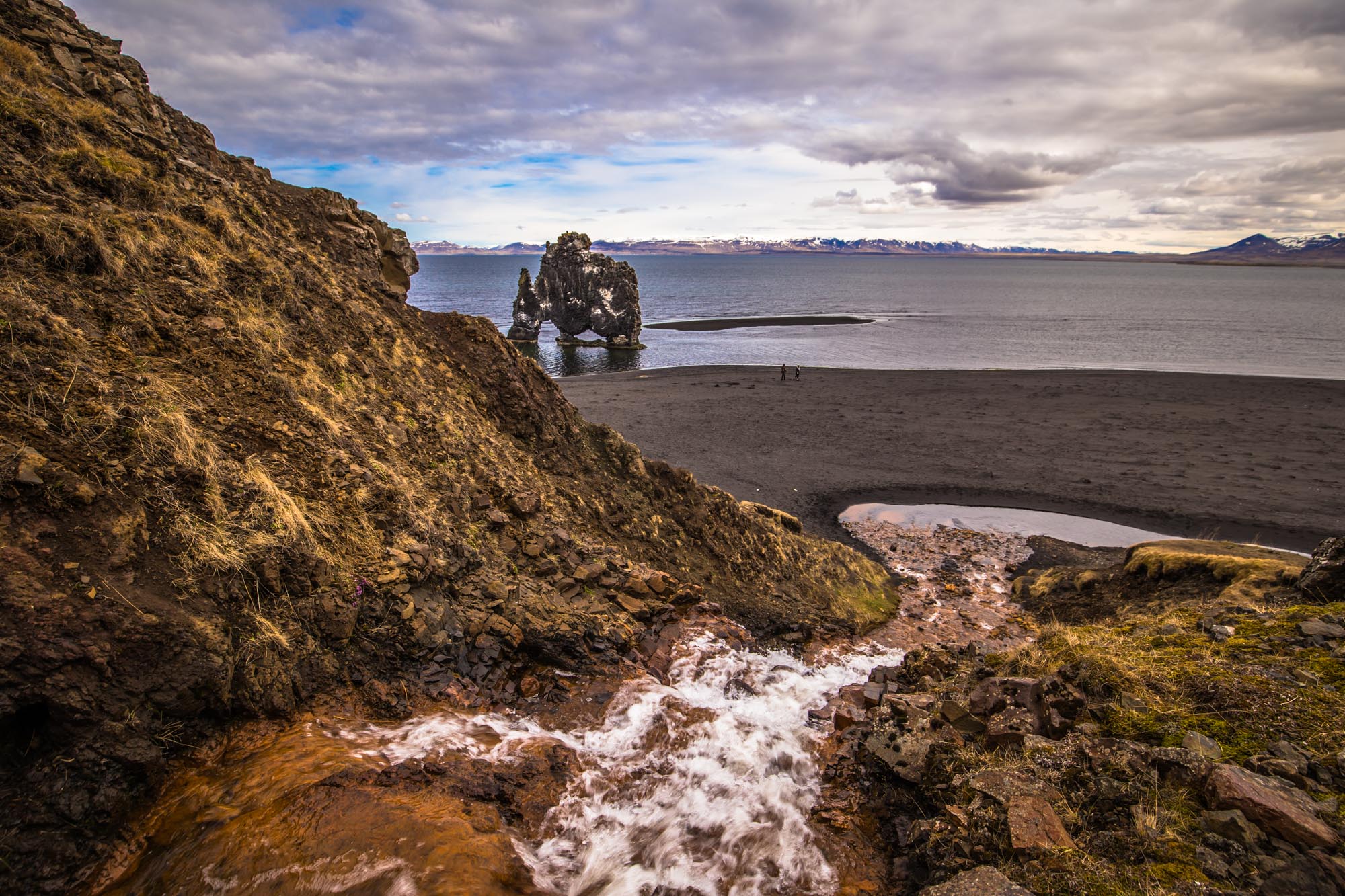 It is often said that this much photographed 15 m high rock stack is what puts Vatnsnes on the map. The offshore rock, which resembles a prehistoric animal, cannot be seen from the road: it is sited between the farms Os and Suluvellir.