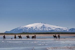 Horse riding trips to Longufjorur (Long Beach) a beautiful stretch of golden sand are on offer from here but there is no safe access to the beach by car.