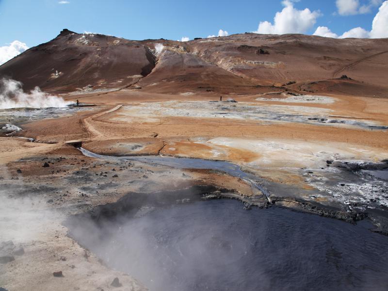 Hverarond is what geologists term a high-temperature area, where the temperature at 1000m deep is over 200 degrees Celsius. Mineral-rich steam and water rise to the surface.
