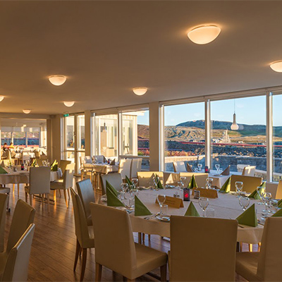 Max's serves the best of the Arctic — from the fjords and fields of Iceland — ocean-fresh fish, free-range lamb, geo-thermal vegetables, home-baked bread and cakes. Even Iceland's most delicate smoked salmon, from Olafsfjordur in the far north, is part of the continental buffet breakfast. Stop by and enjoy a delicious meal with a panoramic view of the surrounding geothermal lava fields and rift tectonic mountains.
