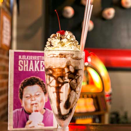 Let the good times roll There’s a real diner-style environment with cosy booth seating and a fabulous jukebox that plays over 1,600 good-time tracks. The menus are the biggest in Iceland. And before you groan, this isn’t just another of those charmingly ambitious Icelandic claims, it actually refers to the physical dimensions ( important to note in a country where size often does matter)! They feature four all-time favourite burgers: cheese, bacon, a béarnaise sauce option, and succulent beef tenderloin.